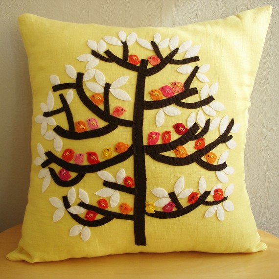 Aren't these pillows cheerful? I can't imagine how long it takes her to cut and stitch those blitheful birds. Considering the work and tiny craftsmanship, her prices are very reasonable. She has so many designs. I love her owls, birds on a wire, birds in a tree, and her fantastic kites that sing SPRIIIIIING at the tops of their linen-threaded lungs.
